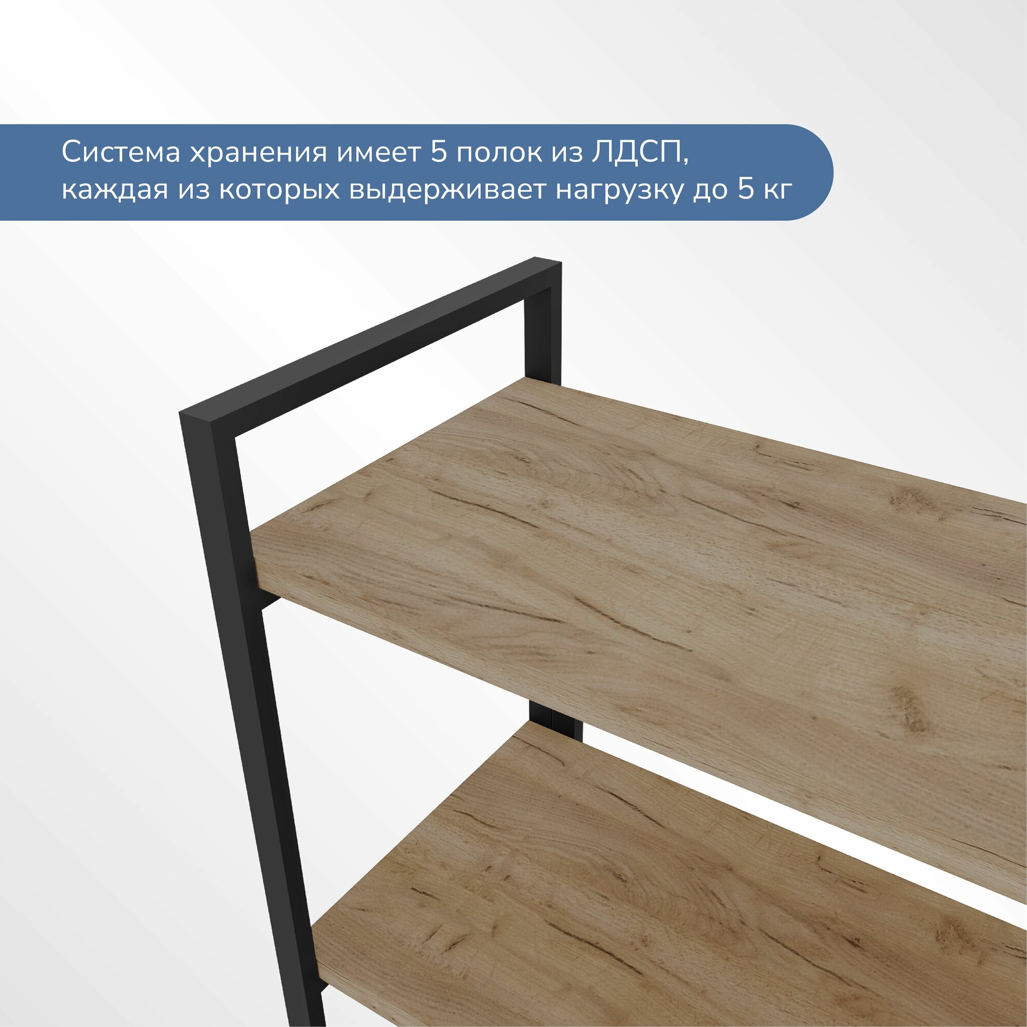 Стеллаж Айсберг Лофт 40/6 / Черный/ с полками дуб крафт табак/ Для дачи/ для дома/ для книг/ в офис