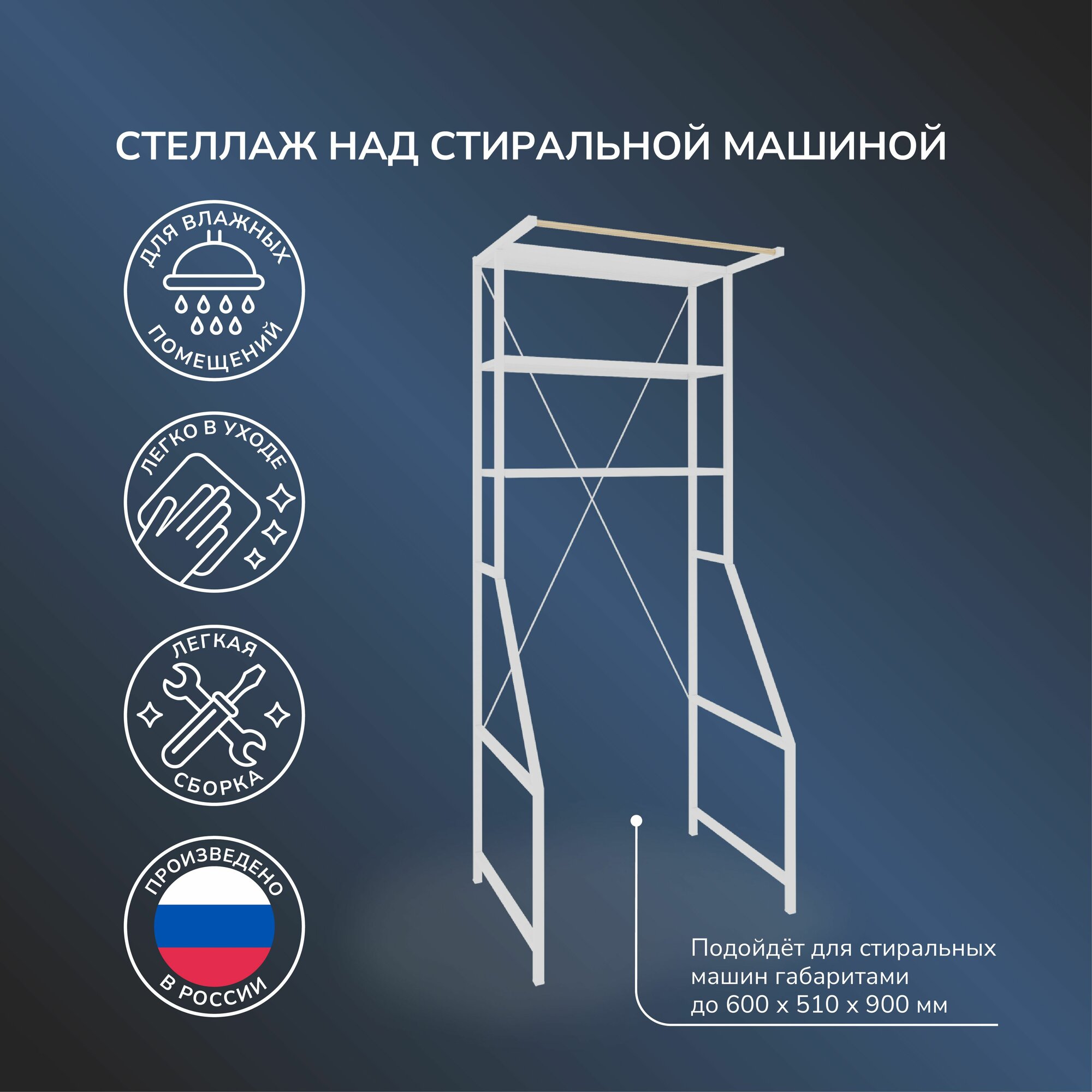 Стеллаж над стиральной машиной Ulitka с ЛДСП, металл, цвет белый 9 000 ₽