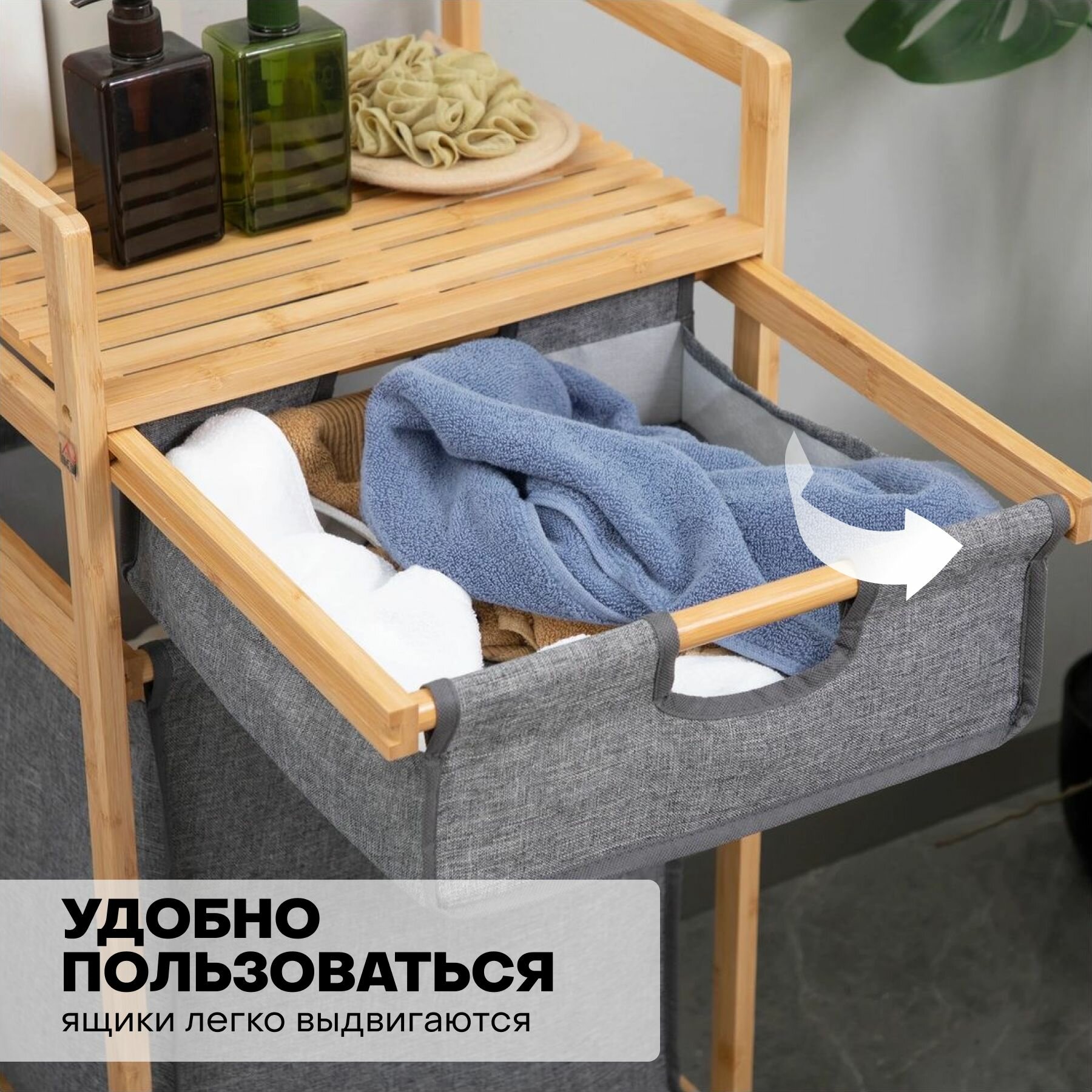 Корзина для белья "Bodella" с ящиками и полочкой на колесиках информация: