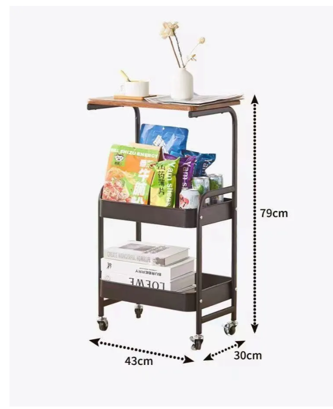 Этажерка на колесах 2 яруса металлическая белая/ Стеллаж на колесах 2 яруса 43x30x77 информация: