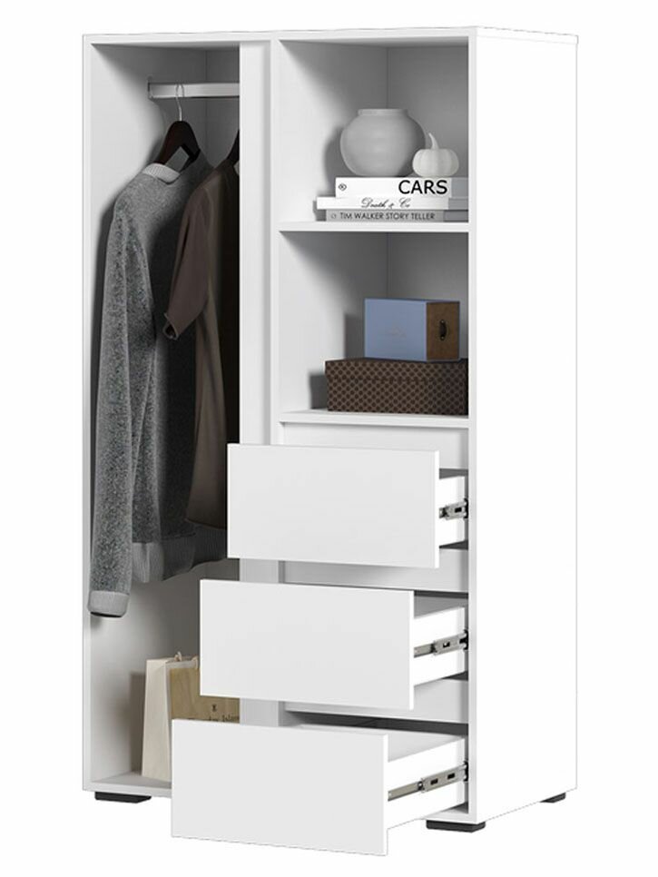 Отзывы на Стеллаж деревянный Ирэн напольный, с дверцей, с ящиками, с полками, со штангой, 80.2х46х141.4 см, Белый