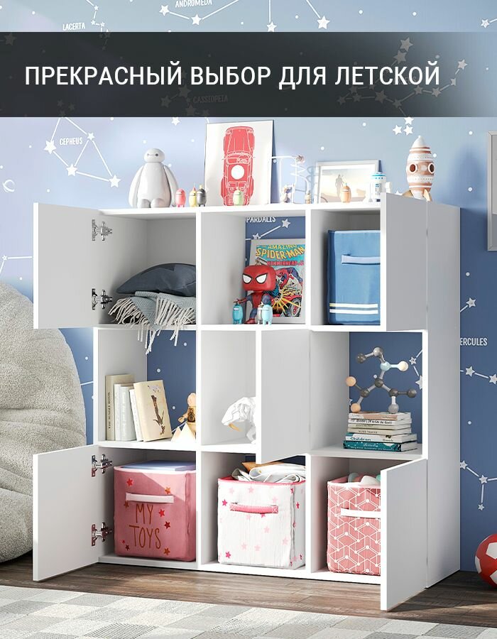 Отзывы на Стеллаж с дверцами деревянный напольный белый, 9 полок, 105.5х33х105.5 см