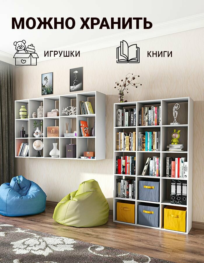 Отзывы на Стеллаж деревянный белый для книг и игрушек, 174,6х105,5х33 см