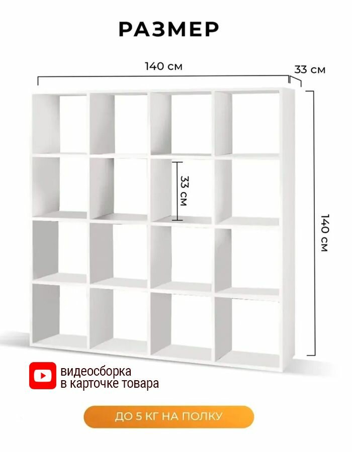 Стеллаж деревянный напольный белый, 16 ячеек, 140х140х33 см 7 900 ₽