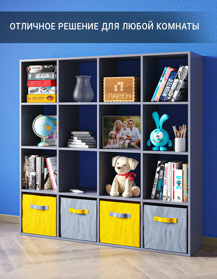 10 цен на Стеллаж деревянный напольный графит, 16 ячеек, 140х140х33 см