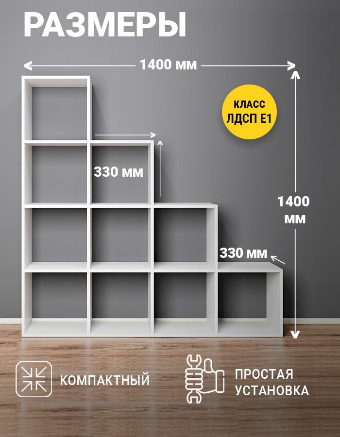 Стеллаж деревянный белый для книг и игрушек, 140х140х33 см информация: