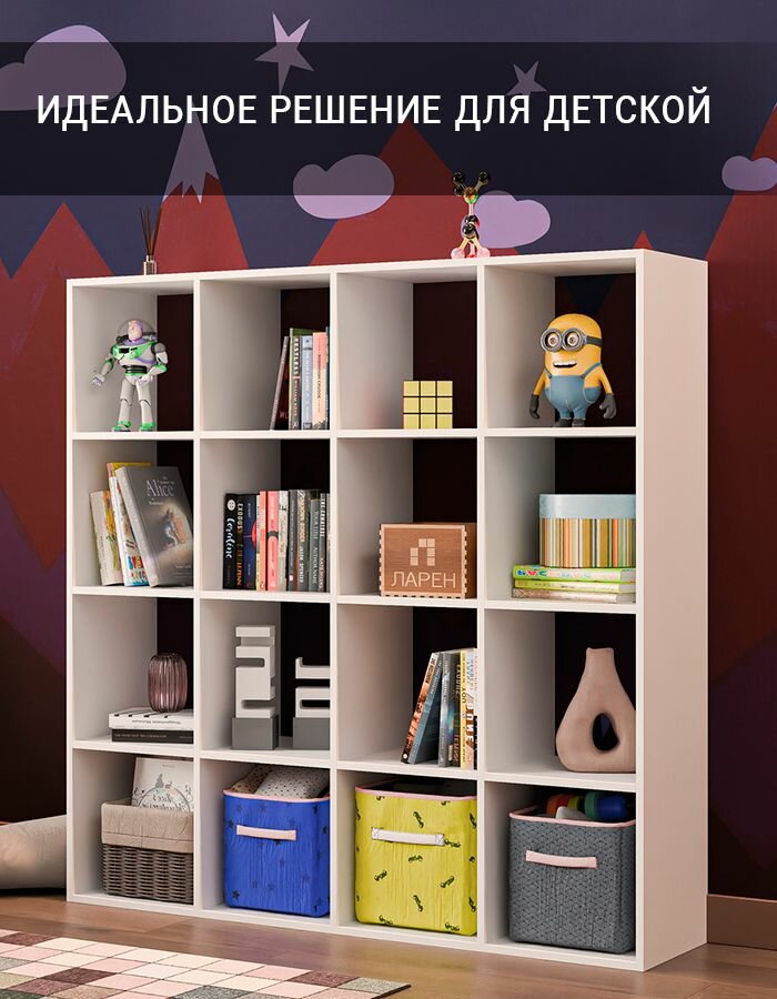 Стеллаж деревянный напольный белый, 16 ячеек, 140х140х33 см информация: