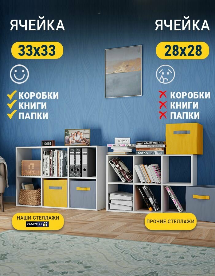 Стеллаж деревянный напольный белый, 12 ячеек, 140х105х33 см 7 200 ₽