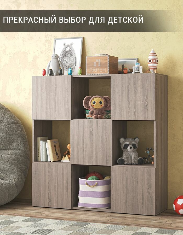 Отзывы на Стеллаж с дверцами деревянный напольный дуб сонома, 9 полок, 105.5х33х105.5 см