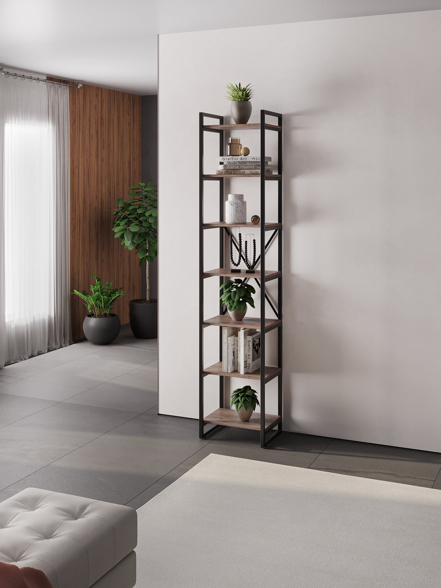 10 цен на Стеллаж в стиле ЛОФТ BRUNO-45 7 полок (210х45х34см) Дуб Веллингтон