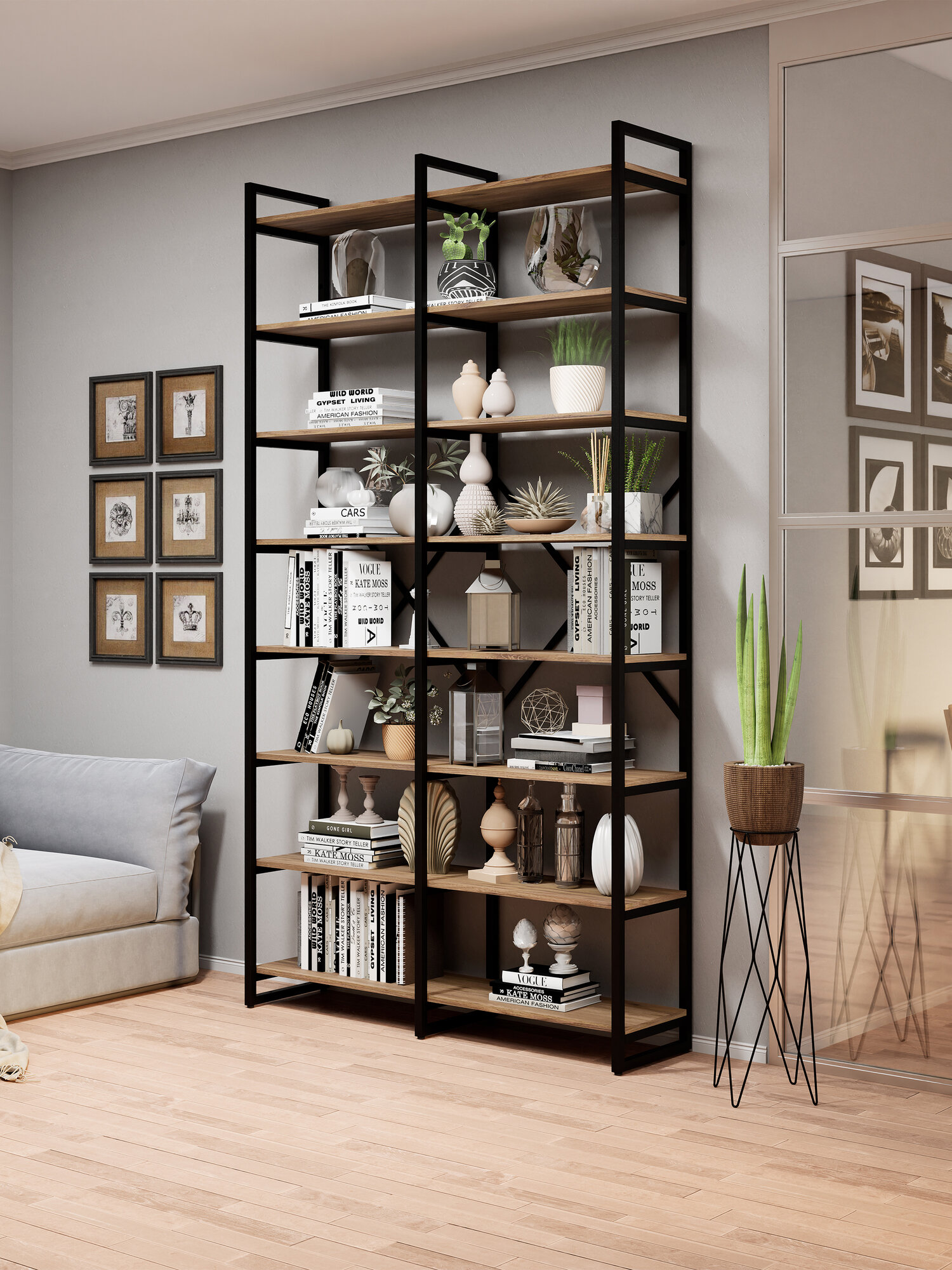 Стеллаж ЛОФТ BRUNO DOUBLE 8 полок (240х134х34см) Дуб Веллингтон информация: