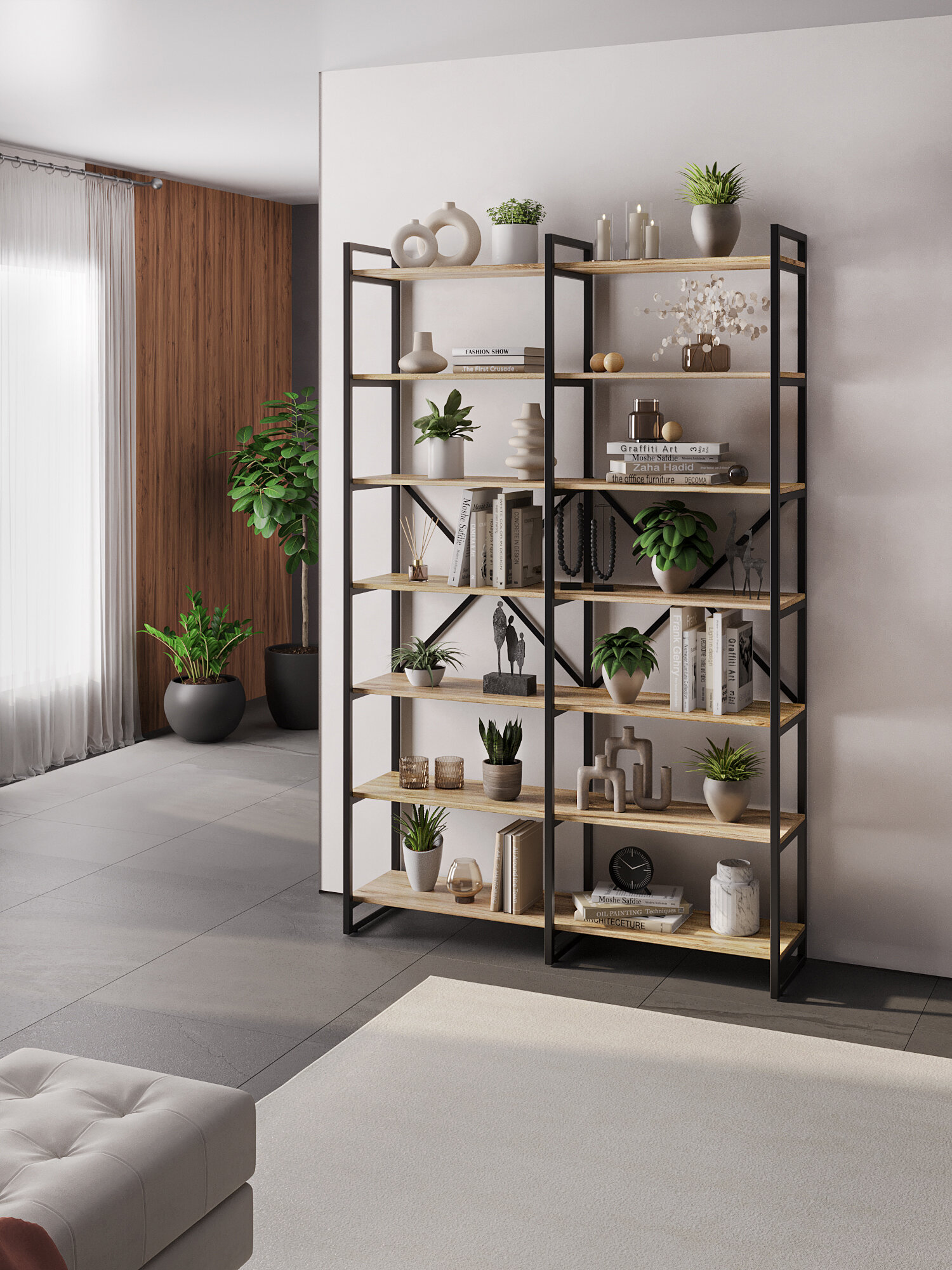 Стеллаж ЛОФТ BRUNO DOUBLE 7 полок (210х134х34см) Дуб Вотан ( Дуб Золотой, Наварра) информация: