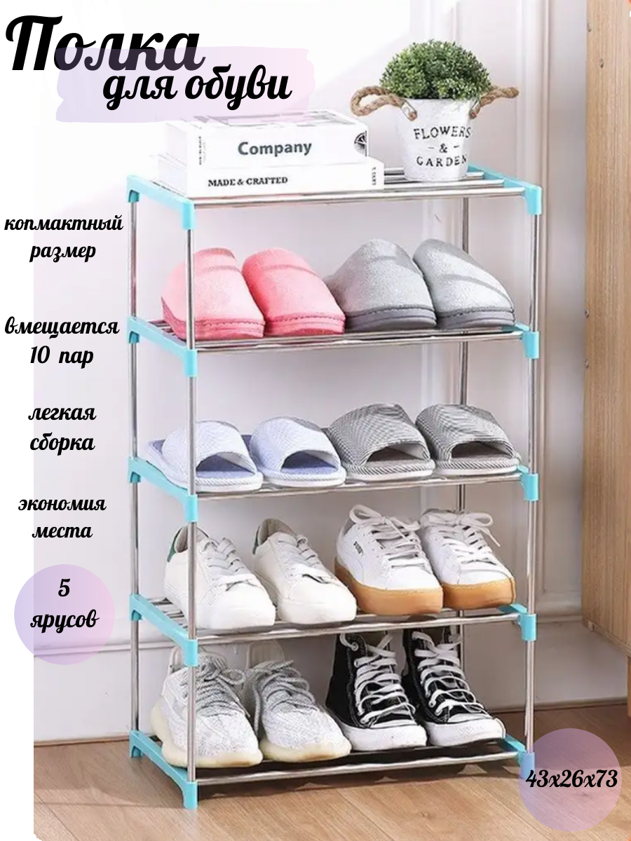 10 цен на Стеллаж для обуви 5 ярусов. Цвет: голубой