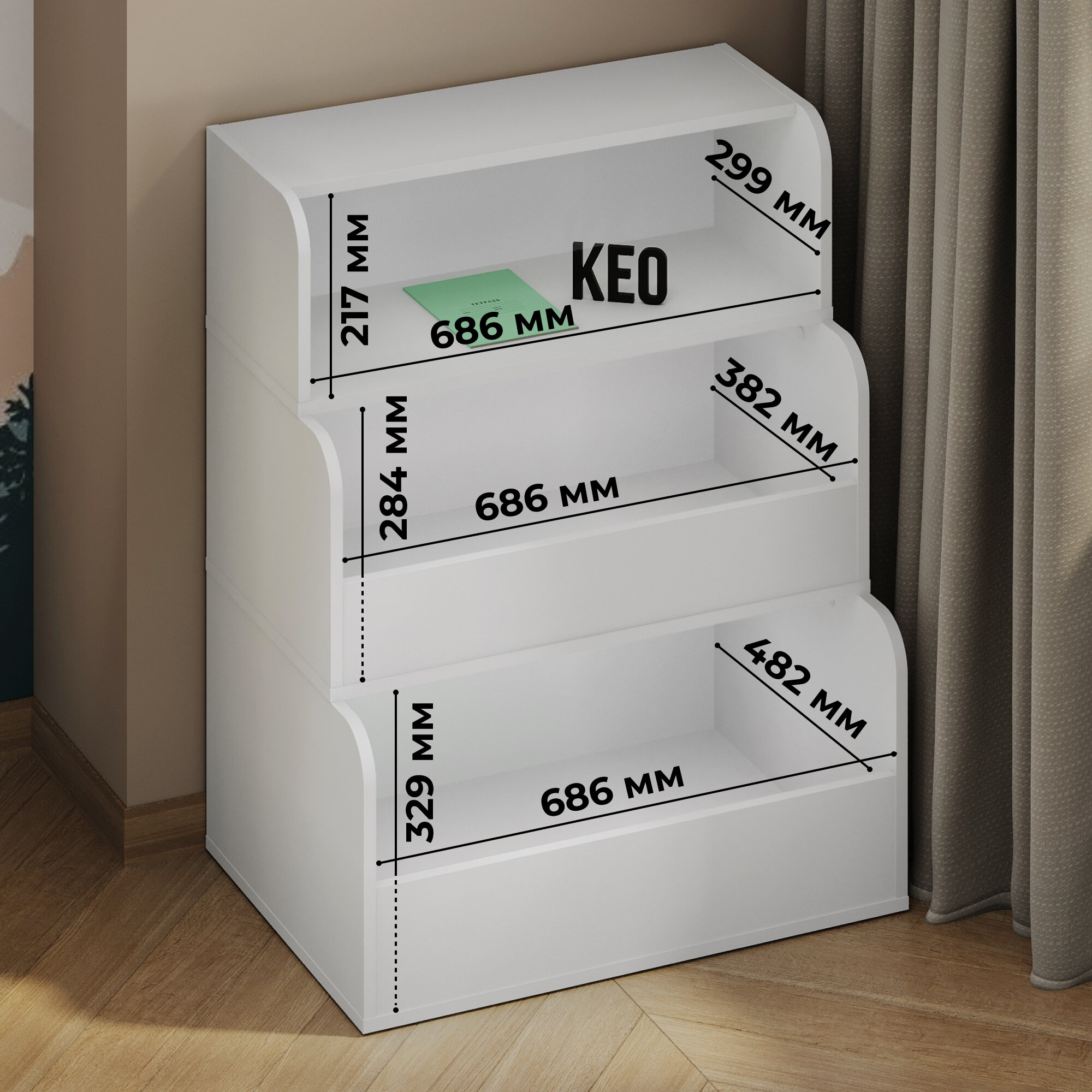 10 цен на Стеллаж напольный Кео СТЖ-504 белый с ящиками полками для игрушек книг в детскую для балкона кладовой ванной