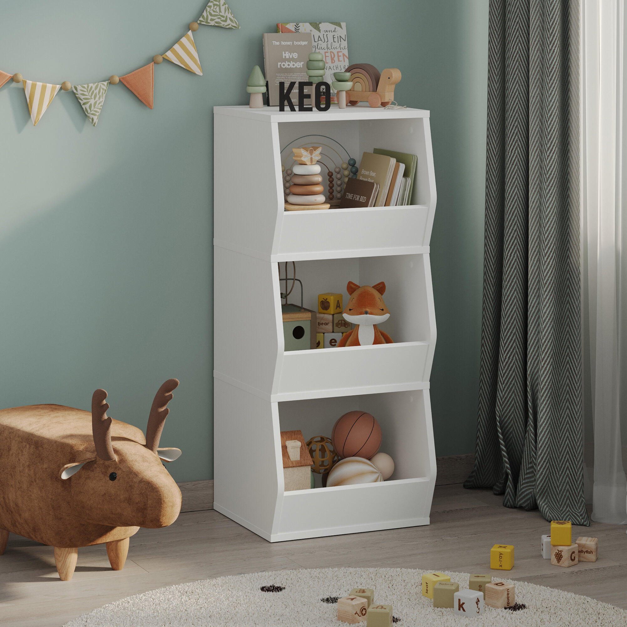 Стеллаж напольный Кео СТЖ-431.1 белый узкий с ящиками для игрушек книг в детскую для балкона кладовой ванной информация:
