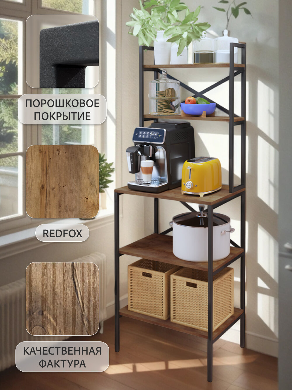 Стеллаж KOKSET loft высокий напольный металлический с 5 деревянными полками из ЛДСП, коричневый, 66х45х181 см, гростат информация: