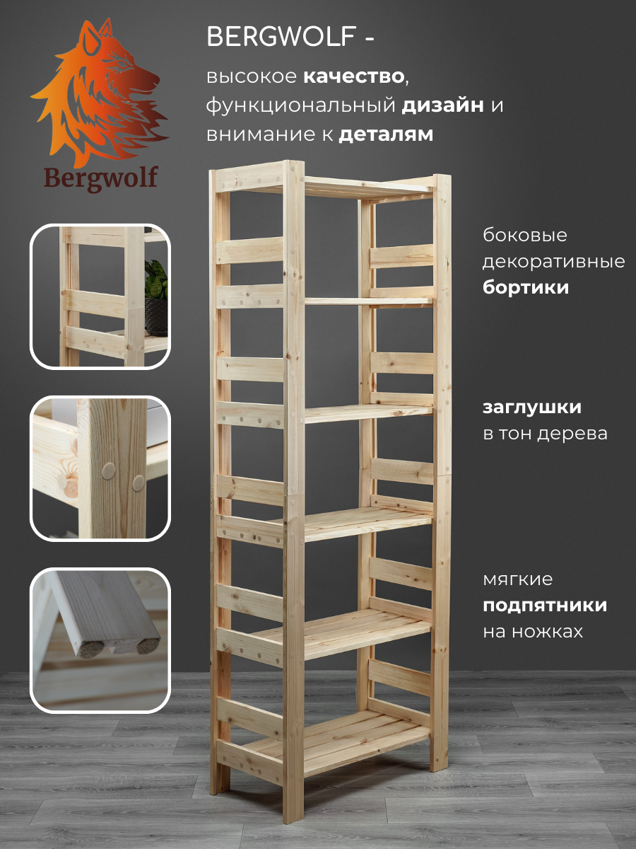Отзывы на Стеллаж деревянный высокий 182х67х34 см, отшлифован, 6 полок, нагрузка 300 кг