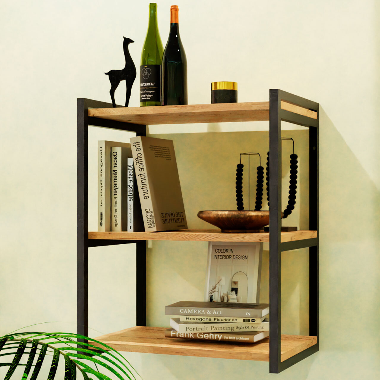 Стеллаж Айсберг Лофт 40/6 / Черный/ с полками дуб крафт табак/ Для дачи/ для дома/ для книг/ в офис