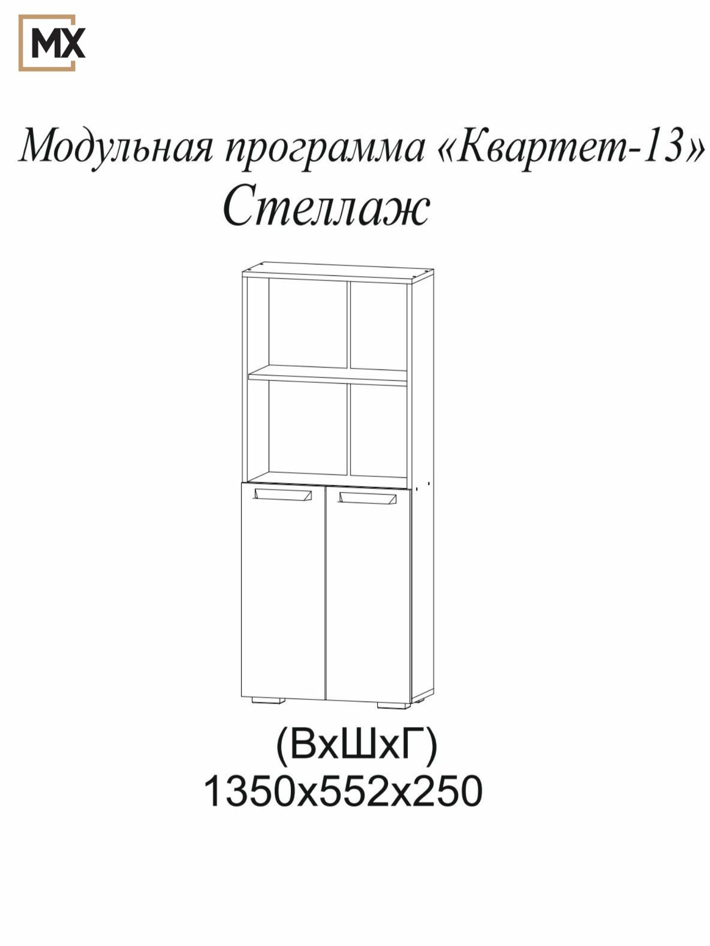 Стеллаж "Квартет-13" Дуб крафт золотой / Графит , ЛДСП, с полками, дверцами для стола 1350х552х250 тэкс информация: