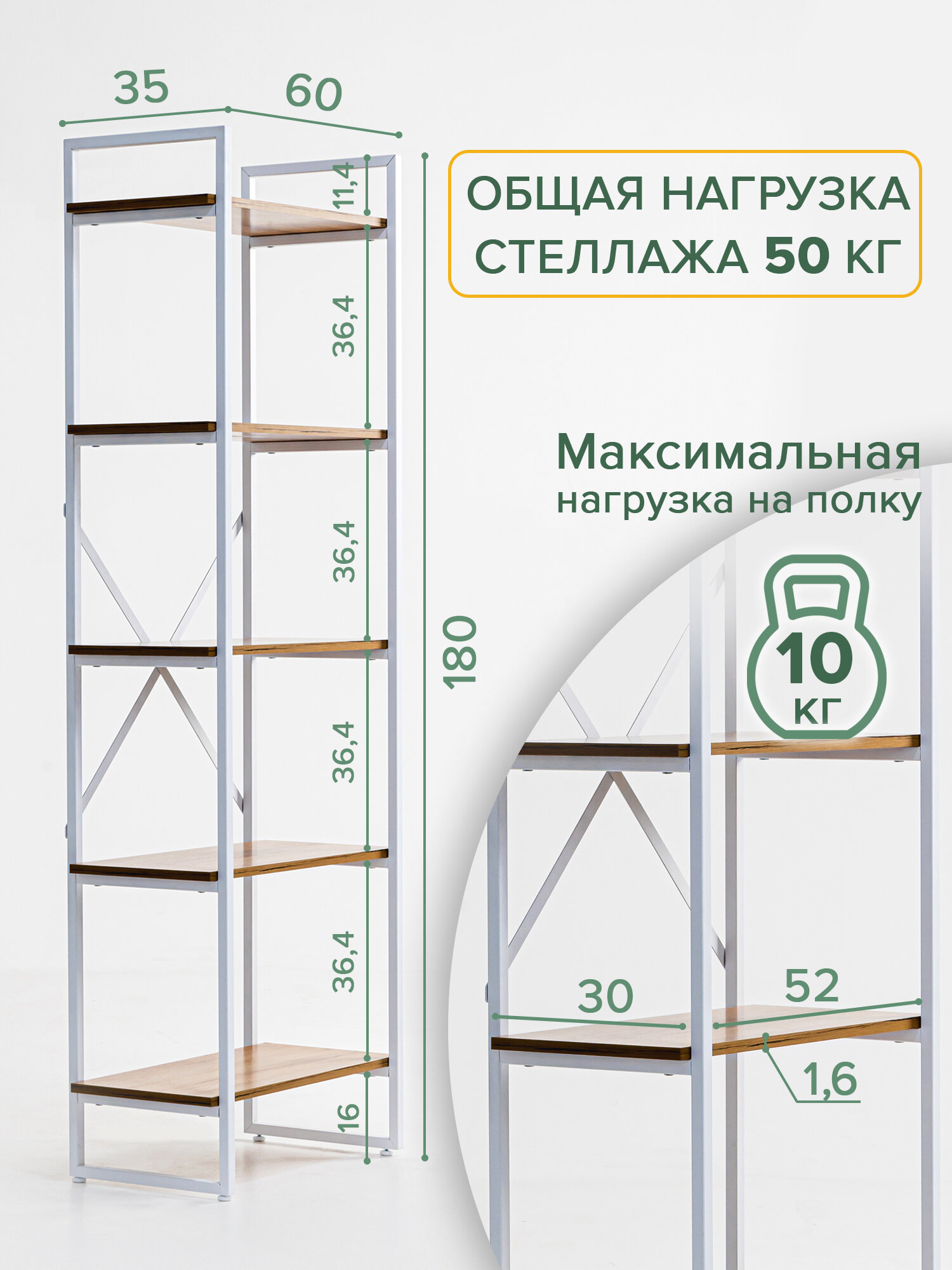 Отзывы на Стеллаж металлический белый в стиле лофт 5 полок "Steelwood" 600х1800
