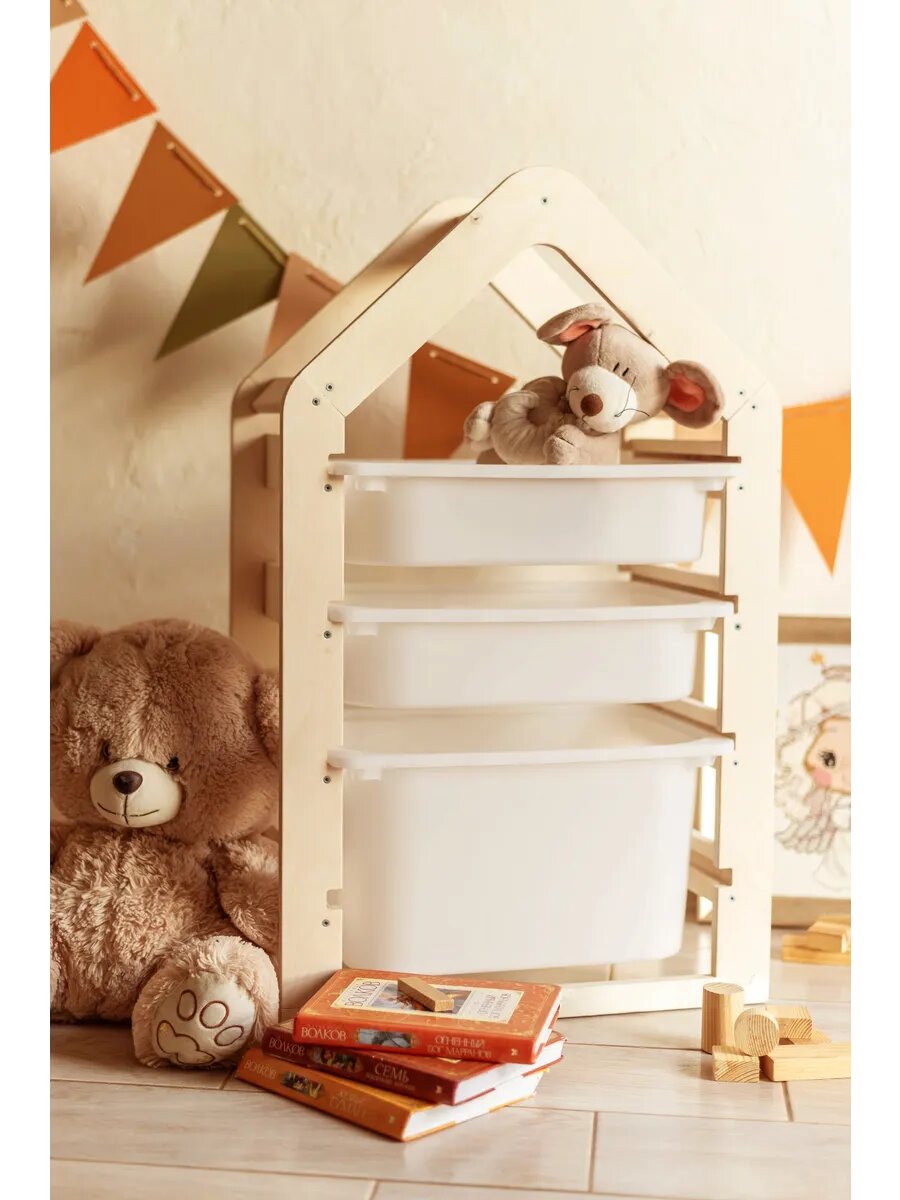 Стеллаж деревянный напольный для игрушек домик информация: