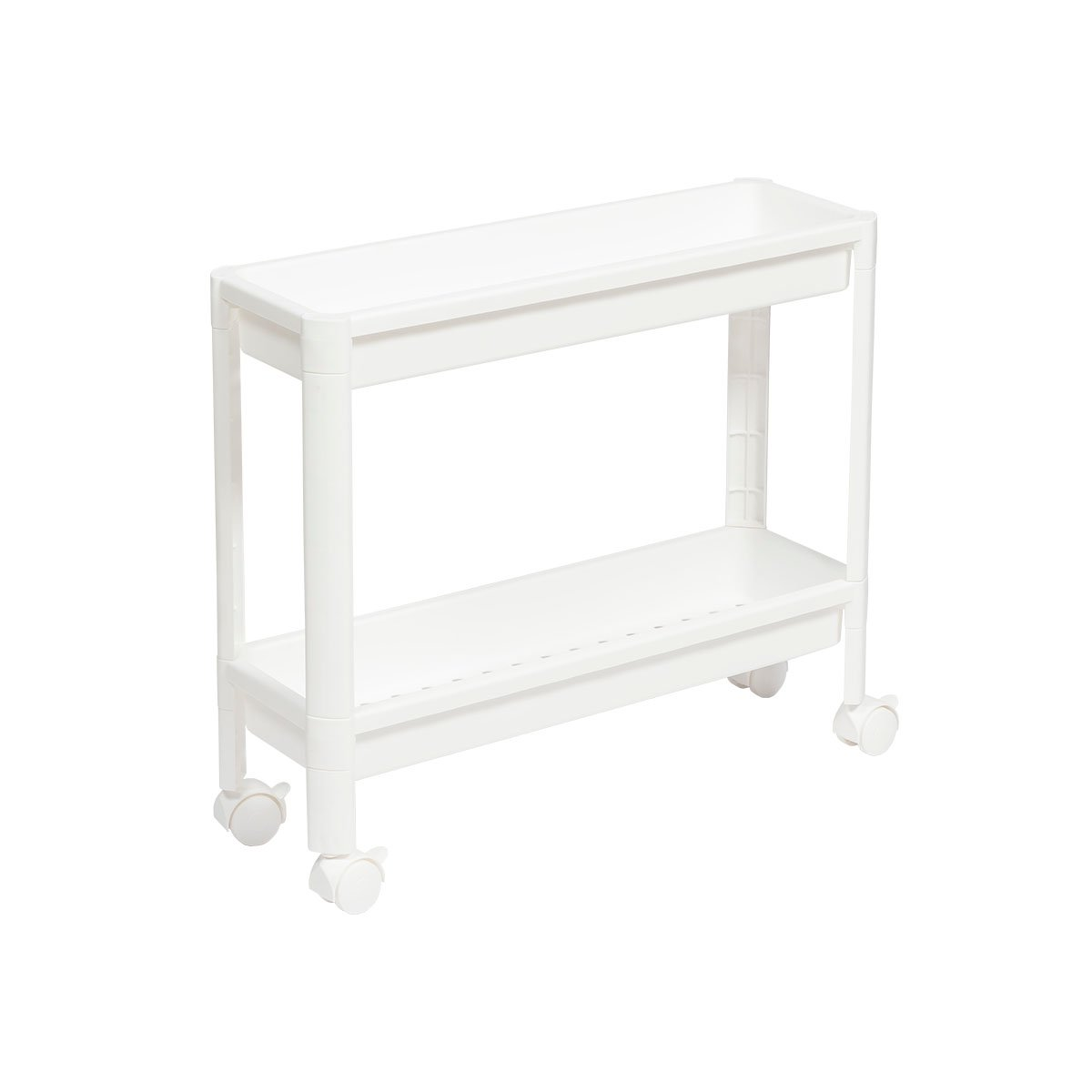 Этажерка для хранения вещей 2х ярусная VIKEA узкая на колесах, цвет белый / Стеллаж напольный для кухни информация: