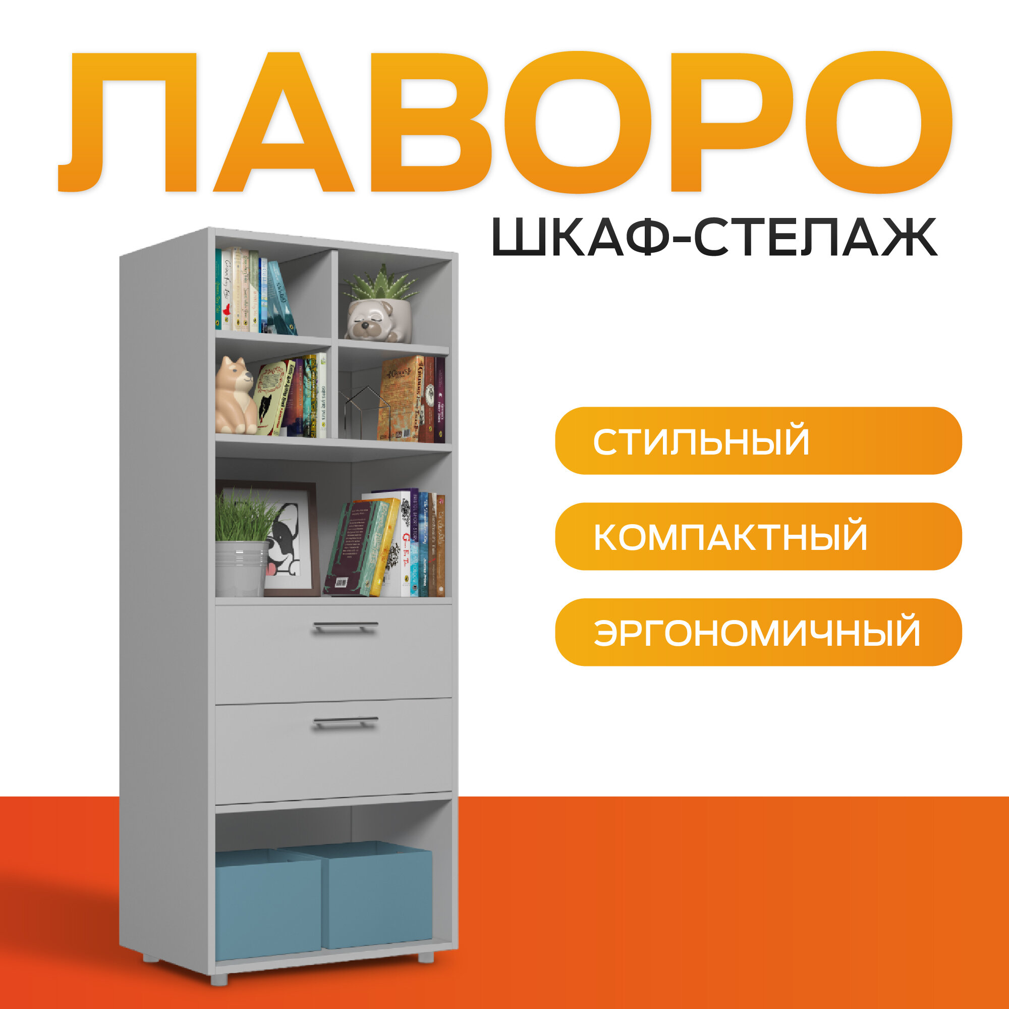 Отзывы на Стеллаж, шкаф с ящиками, с полками, в офис, в детскую, Есэндвич Лаворо 60x40х150 см (Анкор белый/Анкор белый)