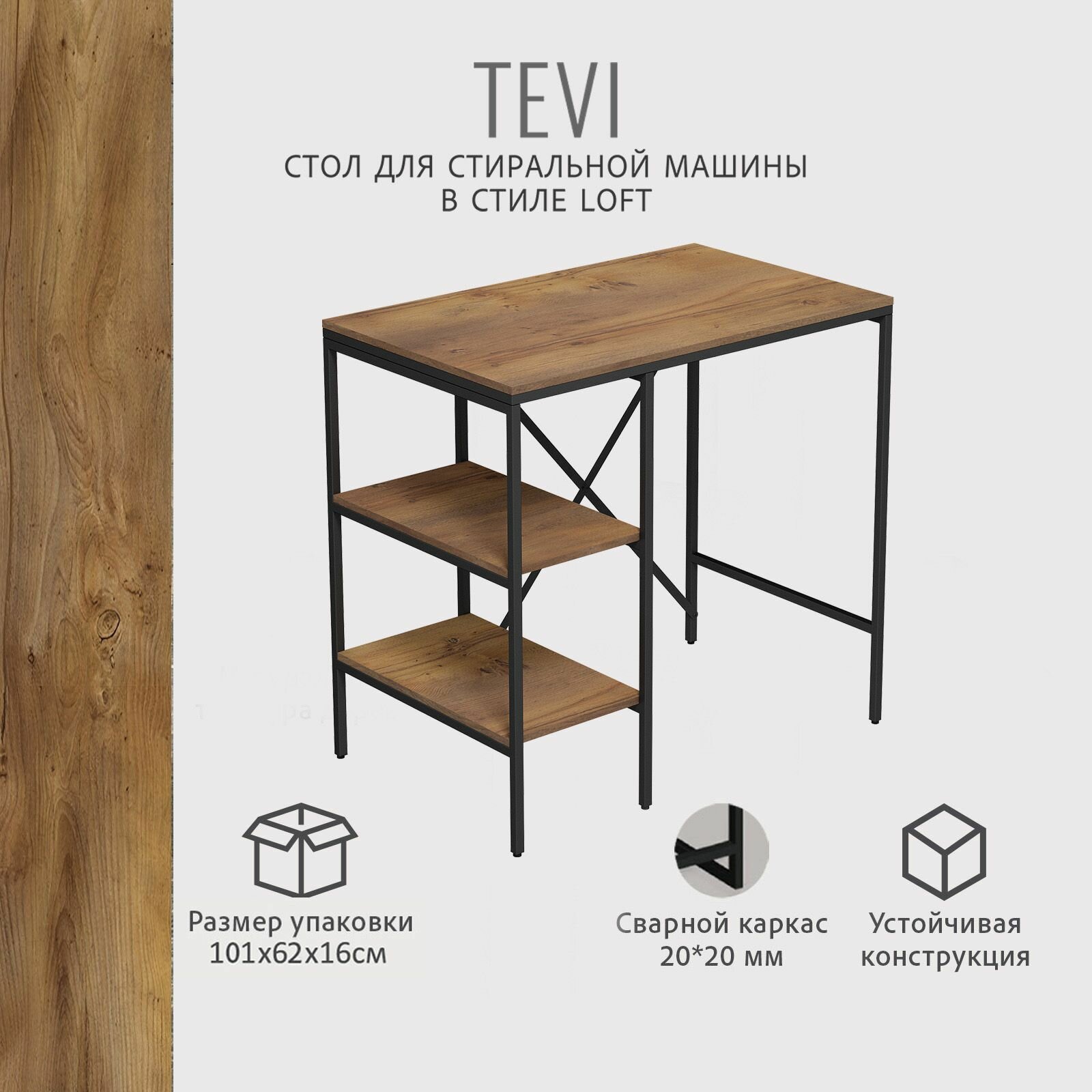 Стеллаж TVATT loft, коричневый, для ванной комнаты, под стиральную машинку, этажерка в ванную, 98х45х92 см, гростат 9 700 ₽