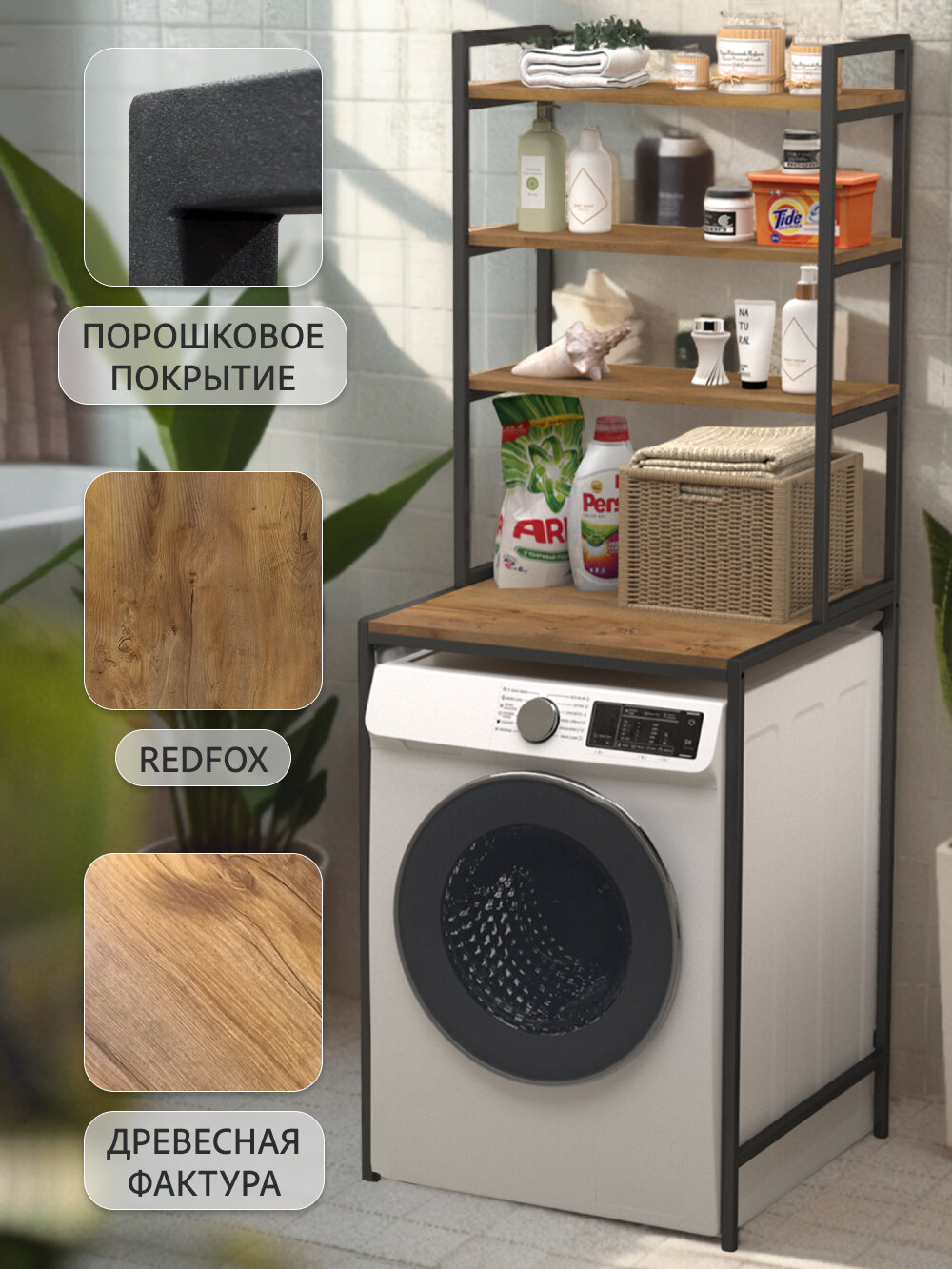 Стеллаж в ванную EVO loft, коричневый, этажерка для стиральной машины, шкаф для ванной комнаты, 66х60х182 см, гростат информация: