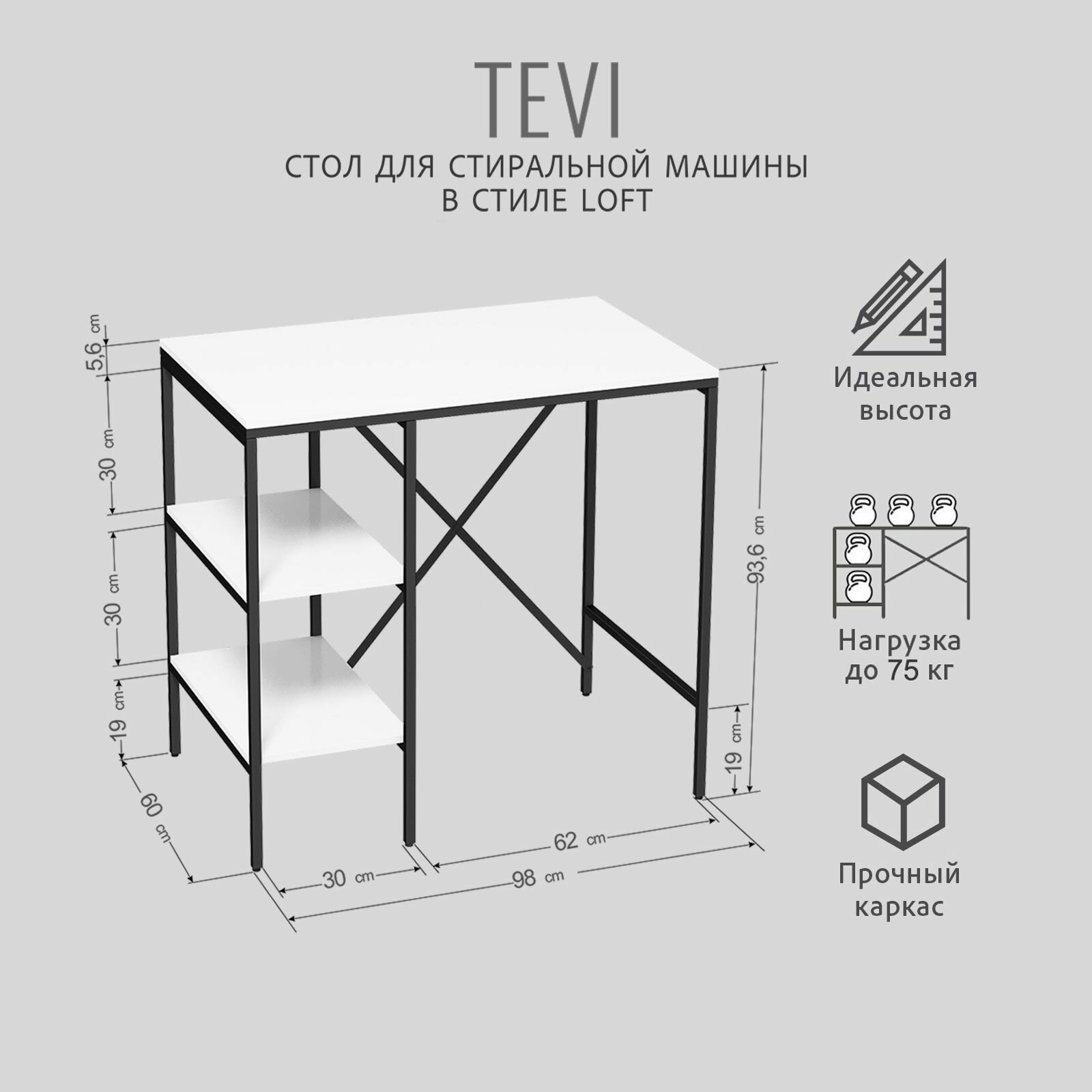 Стеллаж TEVI loft, белый, для ванной комнаты, 98х60х93.6 см, ГРОСТАТ информация: