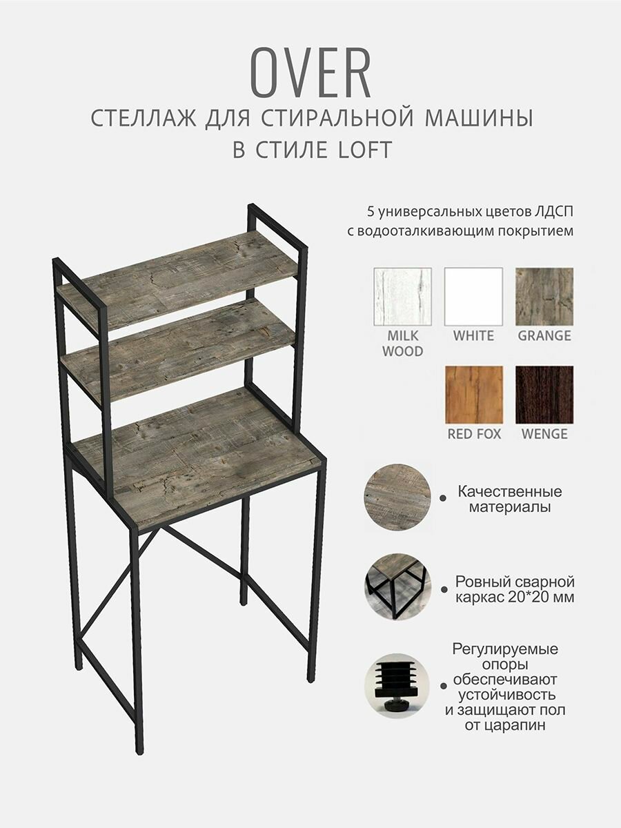 Стеллаж в ванную OVER loft, серый, этажерка для стиральной машины, шкаф для ванной комнаты, 66х45х160 см, гростат информация:
