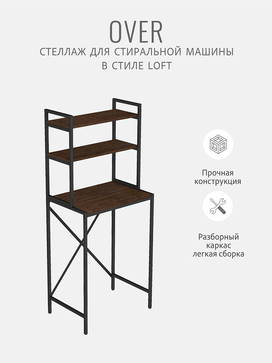 Стеллаж в ванную OVER loft, темно-коричневый, этажерка для стиральной машины, шкаф для ванной, 66х45х160 см, гростат информация: