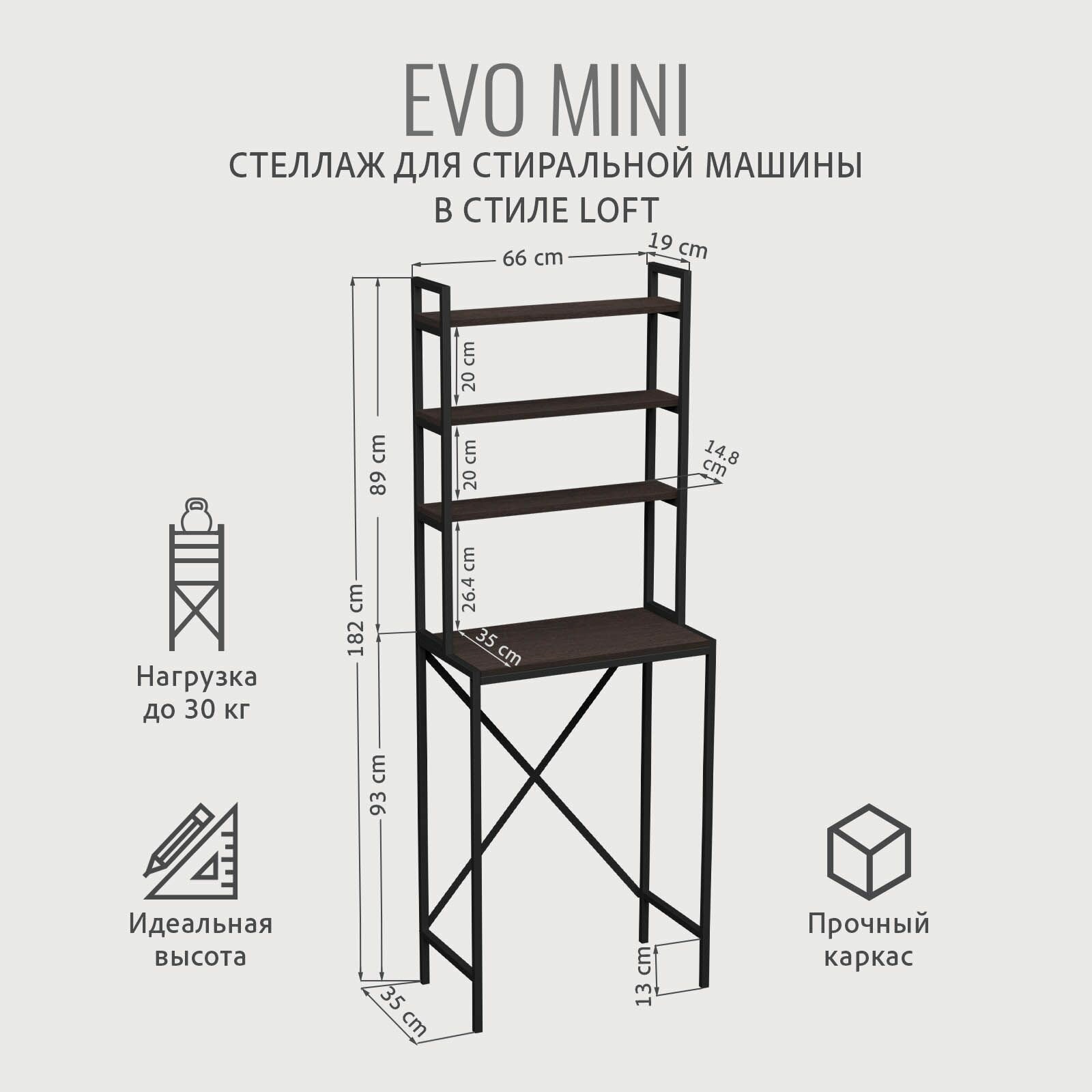 Стеллаж в ванную EVO mini loft, темно-коричневый, для стиральной машины, 66х35х182 см, ГРОСТАТ информация: