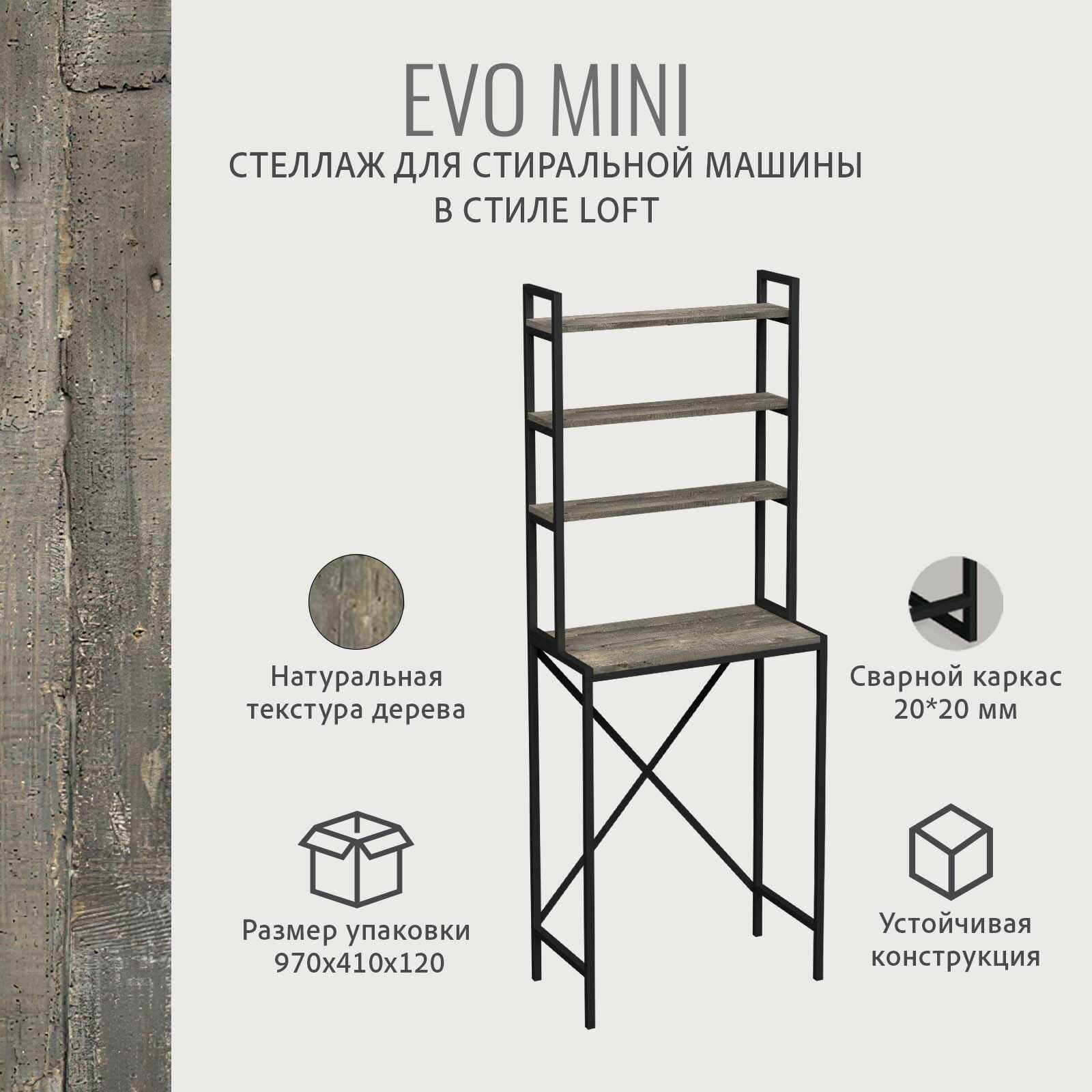 Стеллаж в ванную EVO mini loft, серый, этажерка для стиральной машины, шкаф для ванной комнаты, 66х35х182 см, гростат информация: