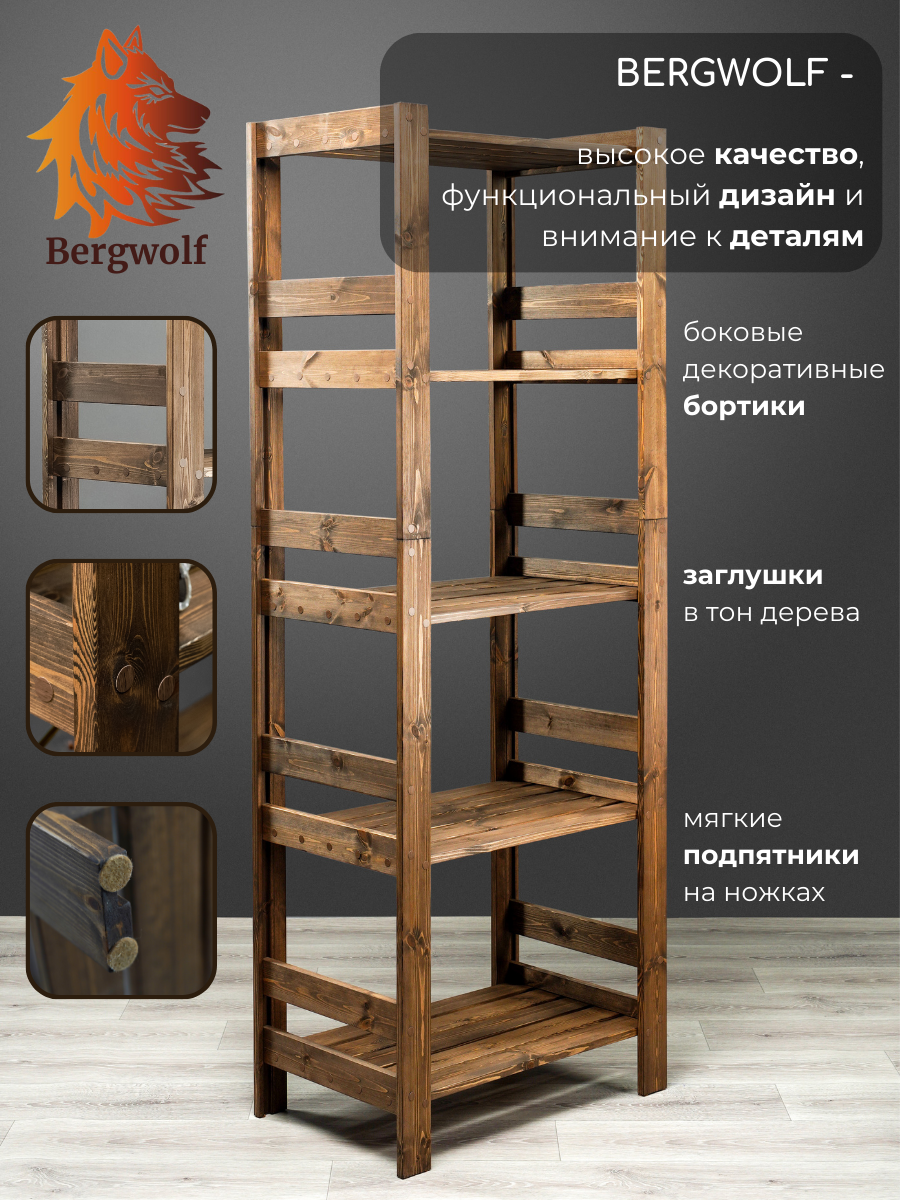 Стеллаж деревянный 182х67х42 см, отшлифован, покрыт защитным премиум маслом, 5 полок, нагрузка 250 кг информация: