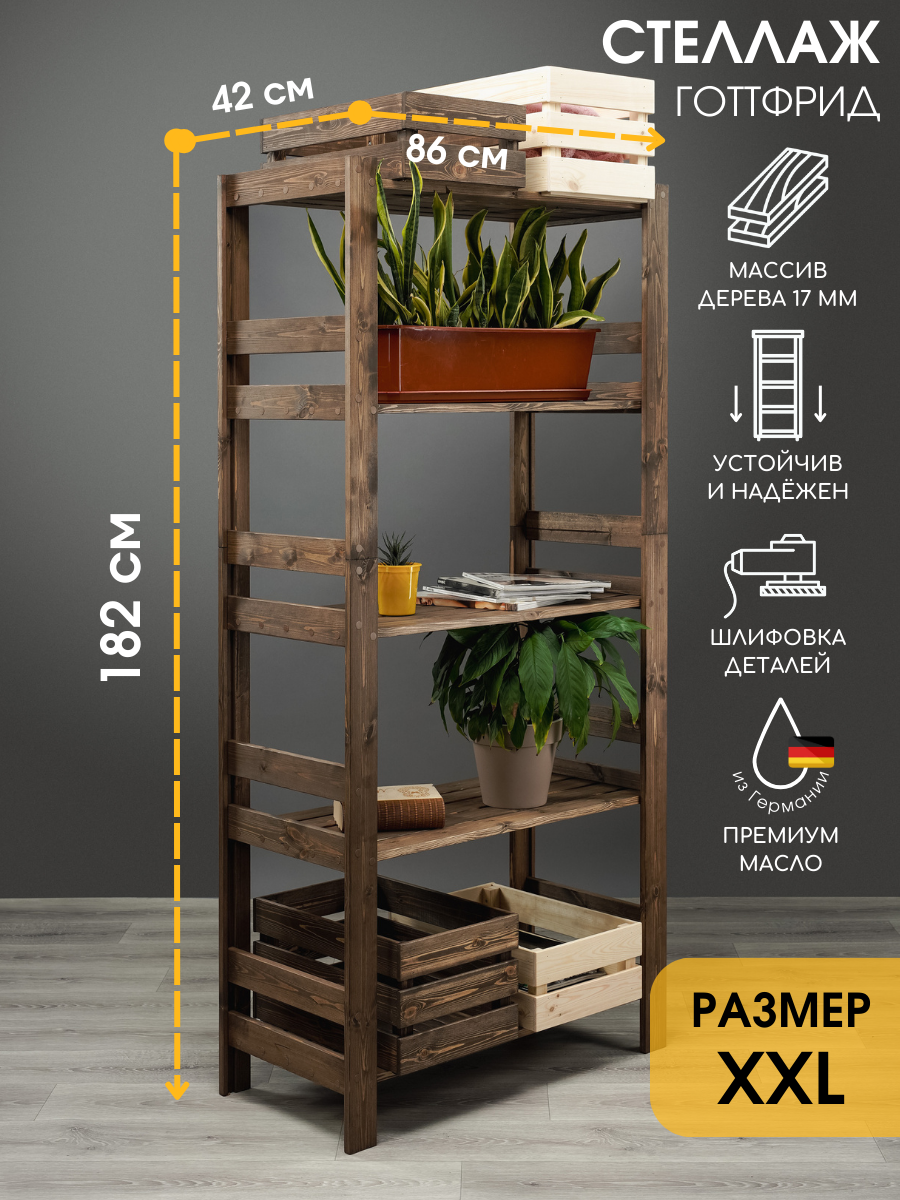 10 цен на Стеллаж деревянный 182х86х42 см, отшлифован, покрыт защитным премиум маслом, 5 полок, нагрузка 250 кг