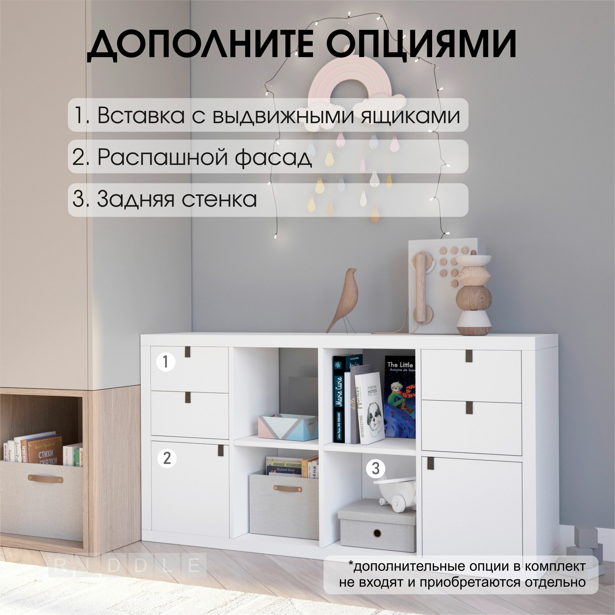 Стеллаж напольный деревянный PIANO 4х2,1444х752х280, для игрушек и книг с дверцами и ящиками, зонирующая перегородка 13 320 ₽