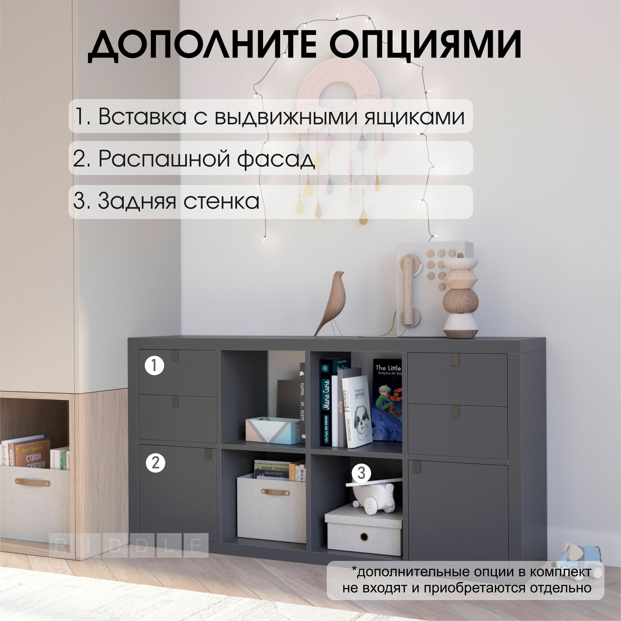 Отзывы на Стеллаж напольный деревянный PIANO 4х2,1444х752х280, для игрушек и книг с дверцами и ящиками, зонирующая перегородка
