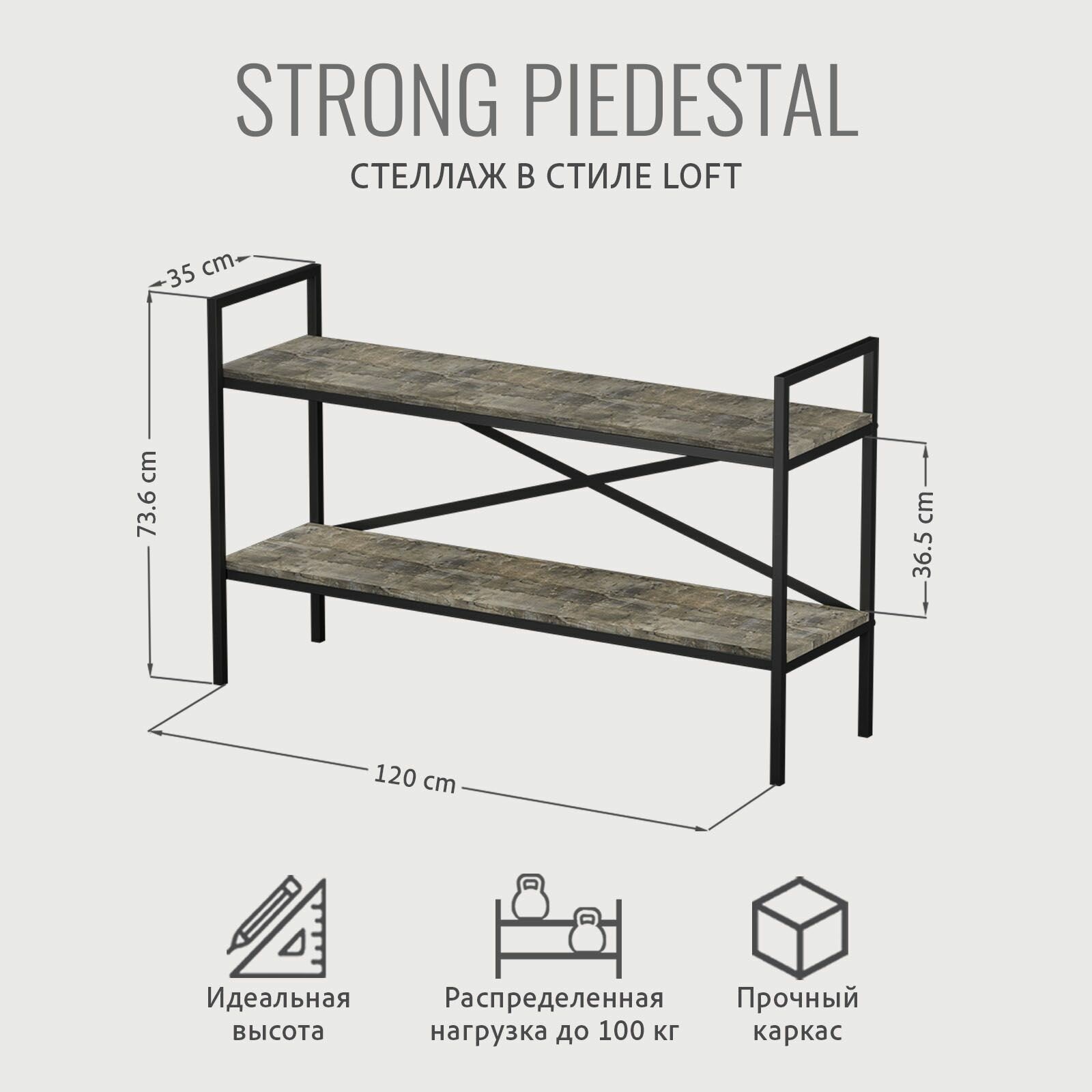 Стеллаж напольный PIEDESTAL loft, серый, тумба под телевизор, модульная этажерка с 2-мя полками, 120х35х73.6 см, гростат 7 790 ₽