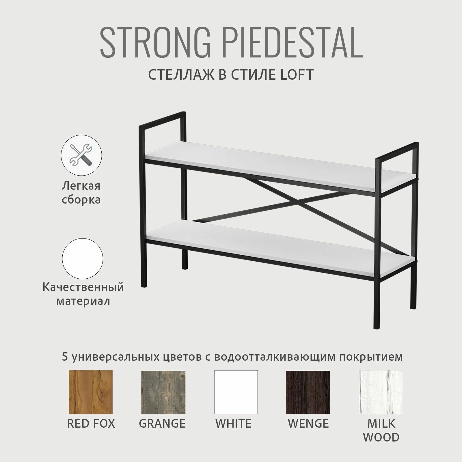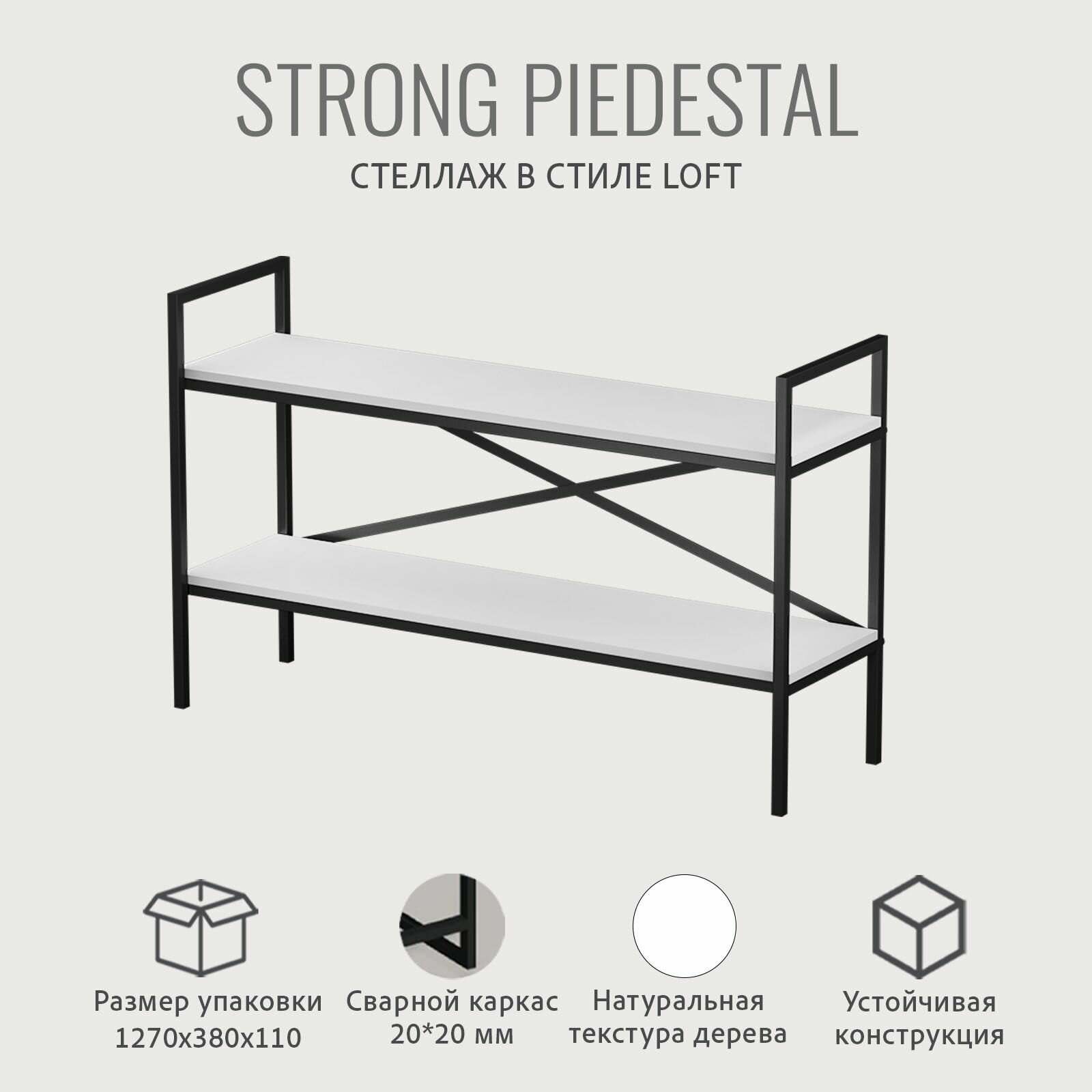 Отзывы на Стеллаж напольный PIEDESTAL loft, белый, тумба под телевизор, модульная этажерка с 2-мя полками, 120х35х73.6 см, гростат
