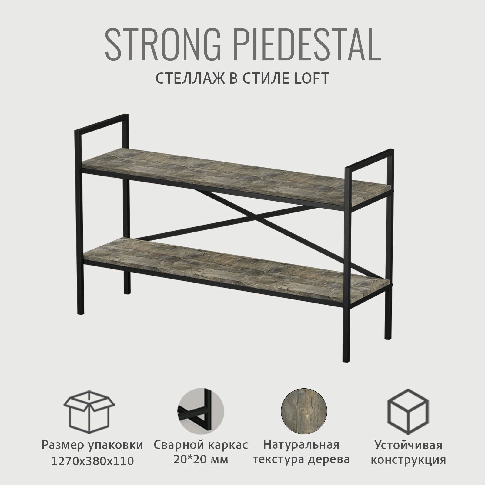 Отзывы на Стеллаж напольный PIEDESTAL loft, серый, тумба под телевизор, модульная этажерка с 2-мя полками, 120х35х73.6 см, гростат