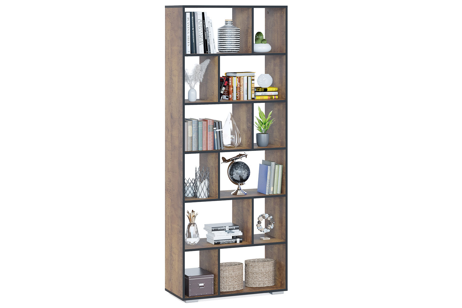 Стеллаж Айсберг Лофт 40/6 / Черный/ с полками дуб крафт табак/ Для дачи/ для дома/ для книг/ в офис