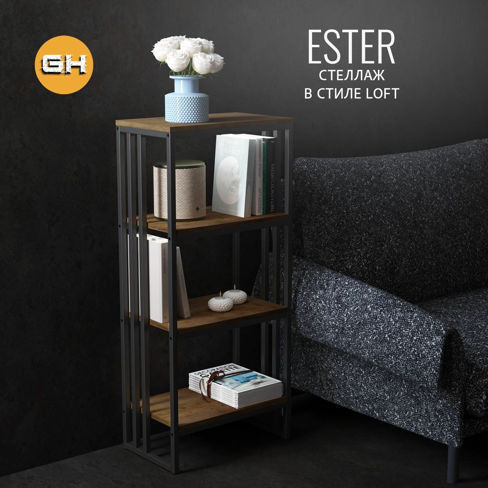 Отзывы на Стеллаж ESTER, коричневый, напольный металлический с 4-мя полками в стиле лофт, 50х30х111.6 см, гростат
