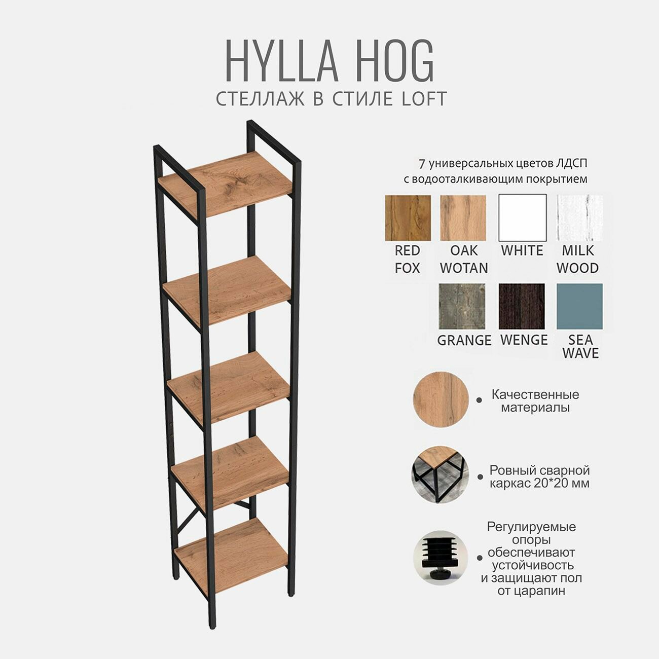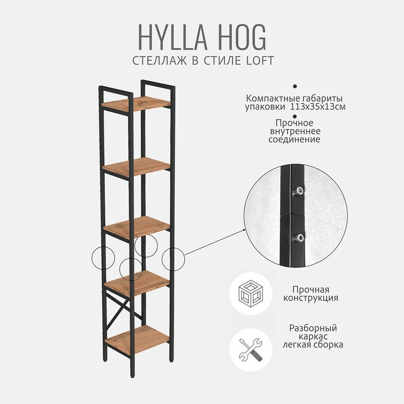 Стеллаж HYLLA HOG, дуб вотан, напольный, модульный шкаф с 5 деревянными полками, 179,4х34х30 см, гростат информация: