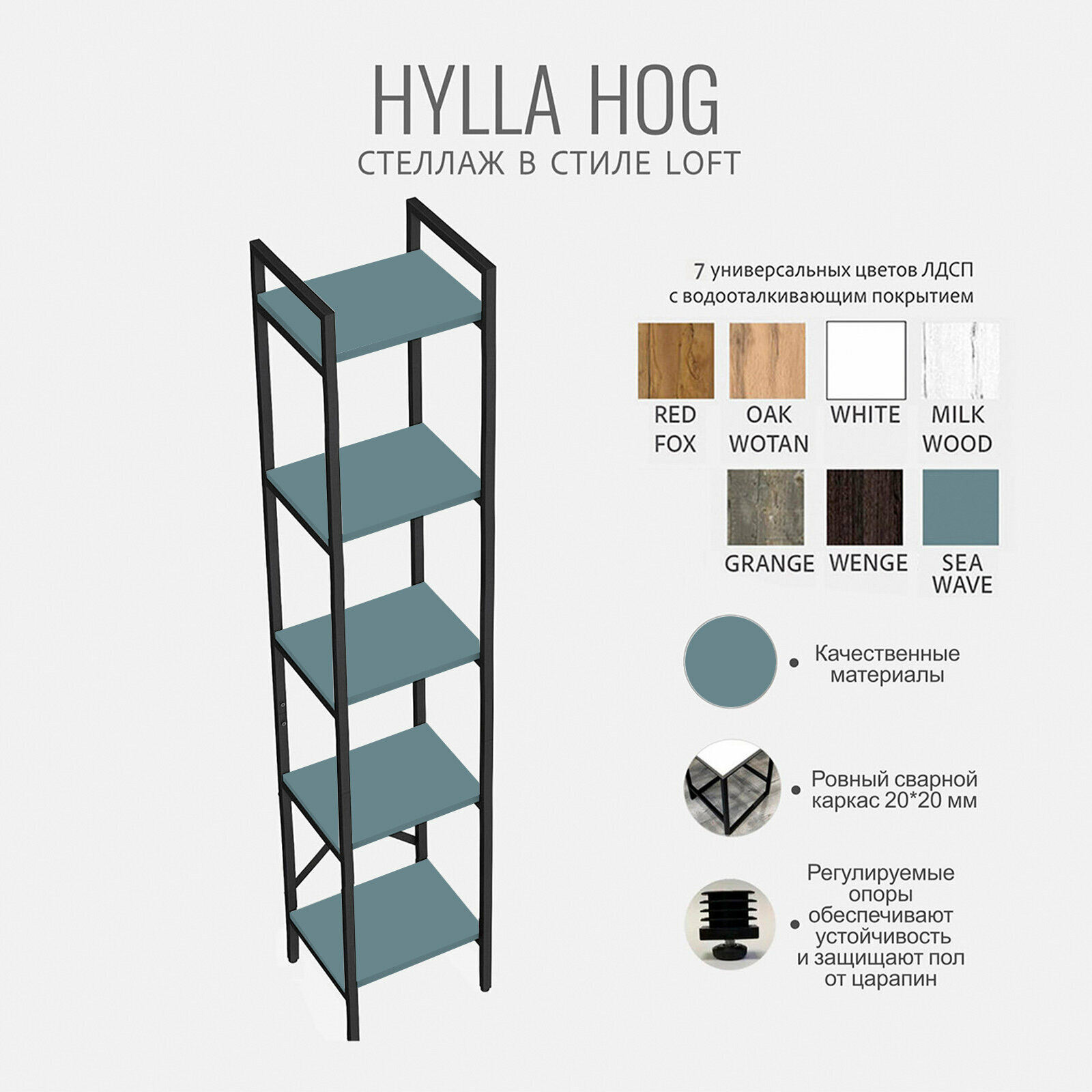 Стеллаж HYLLA HOG, голубой, напольный, модульный шкаф с 5 деревянными полками, 179,4х34х30 см, гростат информация: