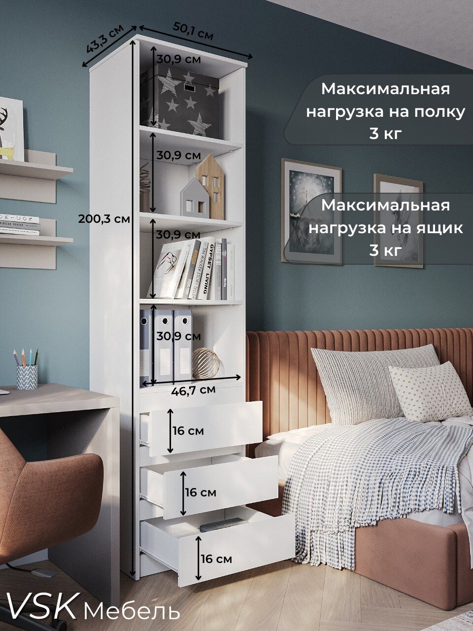 Стеллаж с полками и выдвижными ящиками STARK СТЯ-1, Белый, 50,1 х 200,3 х 43,3 см (ВхШхГ) информация: