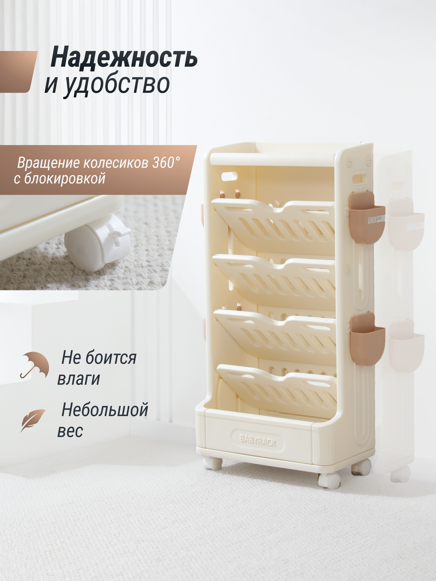 Детский стеллаж для книг UNIX Kids Babyrack 4 полки, органайзер для учебников, тетрадей и канцелярии, тумба для игрушек информация: