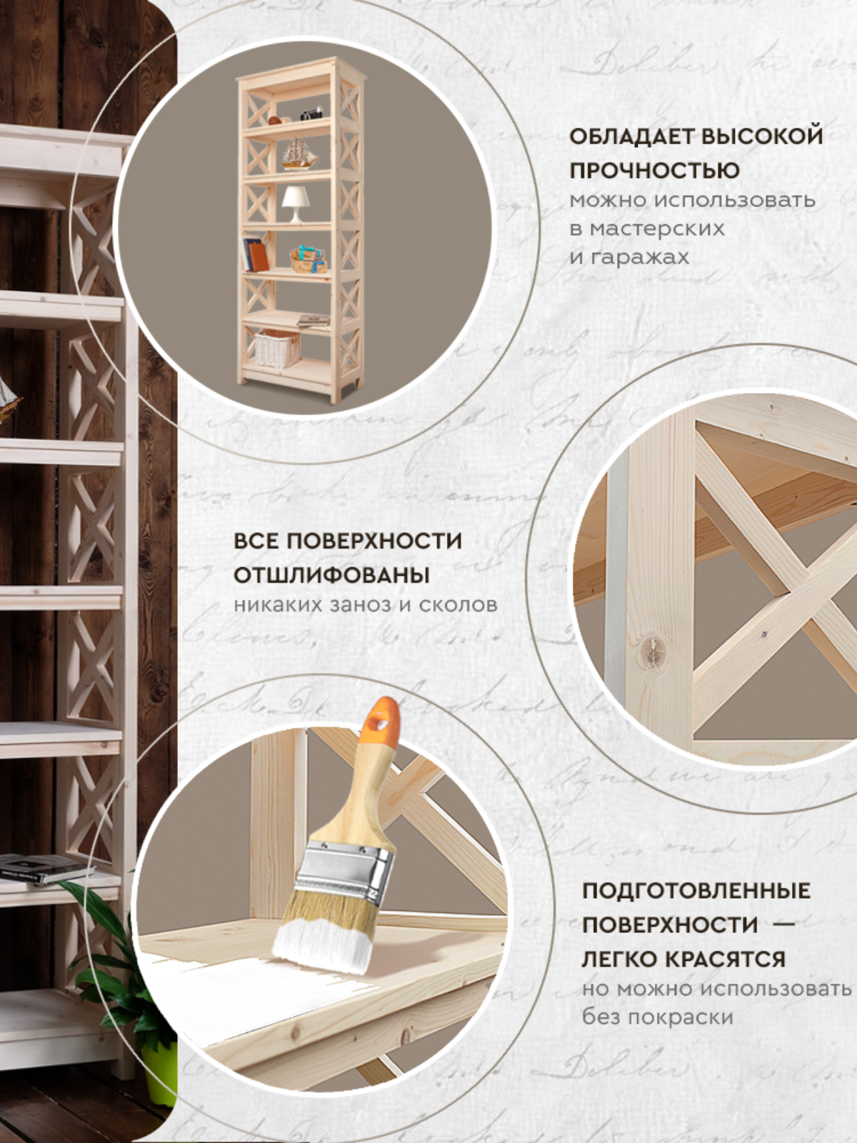 Отзывы на Стеллаж деревянный напольный 165х71х40см, этажерка Прованс 6 полок