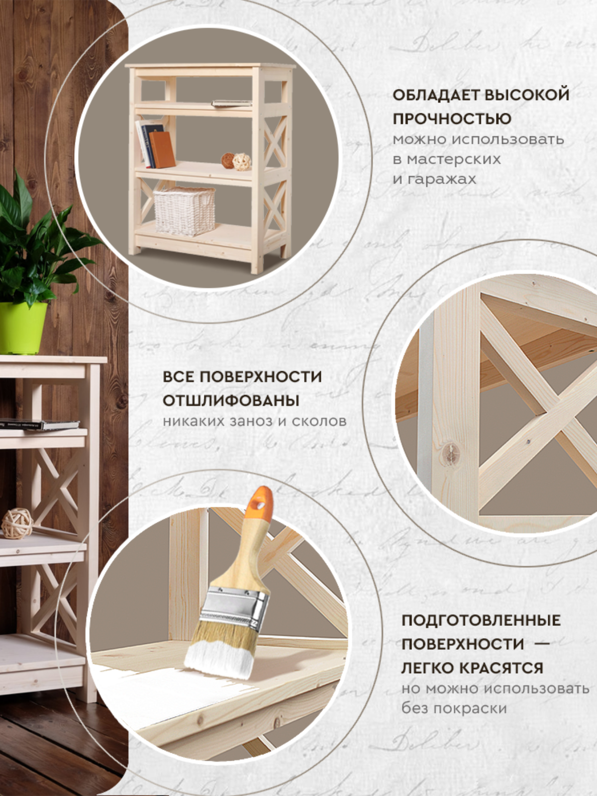 Отзывы на Этажерка деревянная 91х71х40см, стеллаж напольный Прованс 4 полки