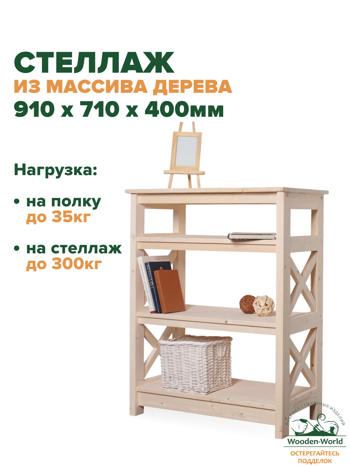 Этажерка деревянная 91х71х40см, стеллаж напольный Прованс 4 полки информация: